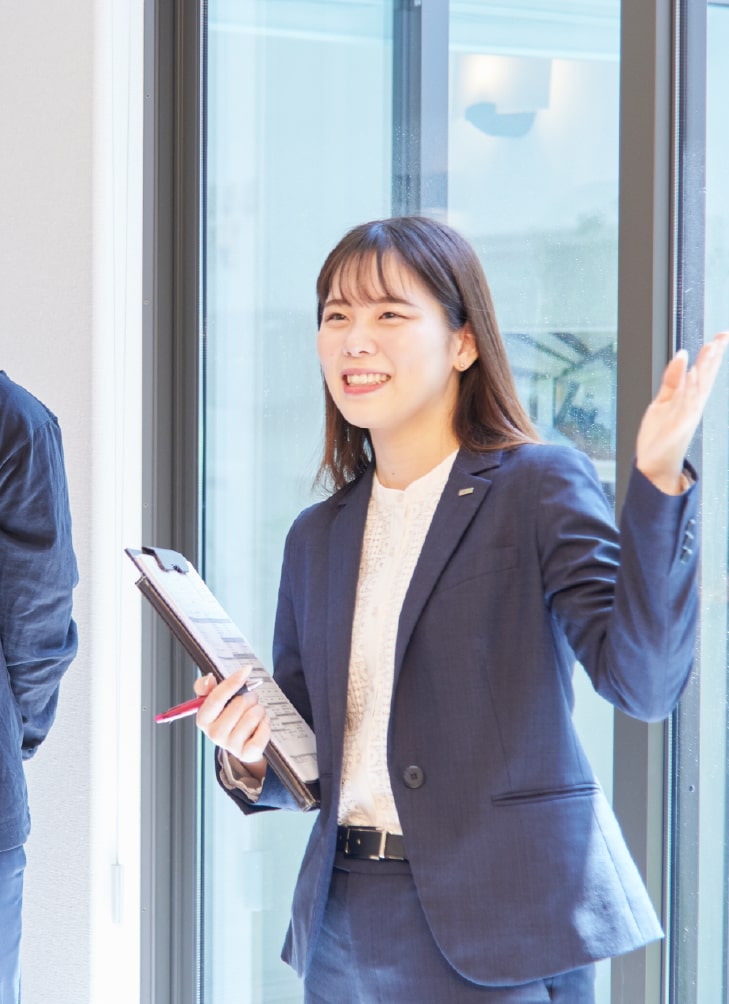 注文住宅は、住宅の中でも最初にお会いしてから引き渡しまでの期間が長いので、お客様と親密な関係になれます。打ち合わせで何回もお会いするだけでなく地鎮祭もあるので、時間を共有した分だけ近い関係になり、納得いく家が完成したときの喜びはひとしおです。「あなたに担当してもらえてよかった」と、ご親族が家を建てる際に私をご紹介いただけると、本当に嬉しいです。