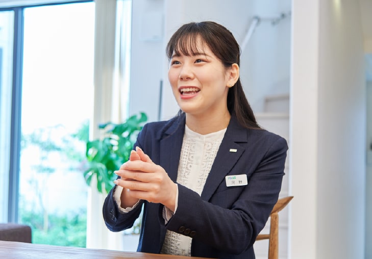 現在は、新築や建て替え、家探しのご相談を受け、お客様にとって何がベストかを一緒に考えて提案する仕事をしています。お客様のご希望がどんな内容であってもポラスグループ全体でお手伝いができるので、「住まいに関することは何でも河野さんに相談してみよう」と思っていただくことが目標です。