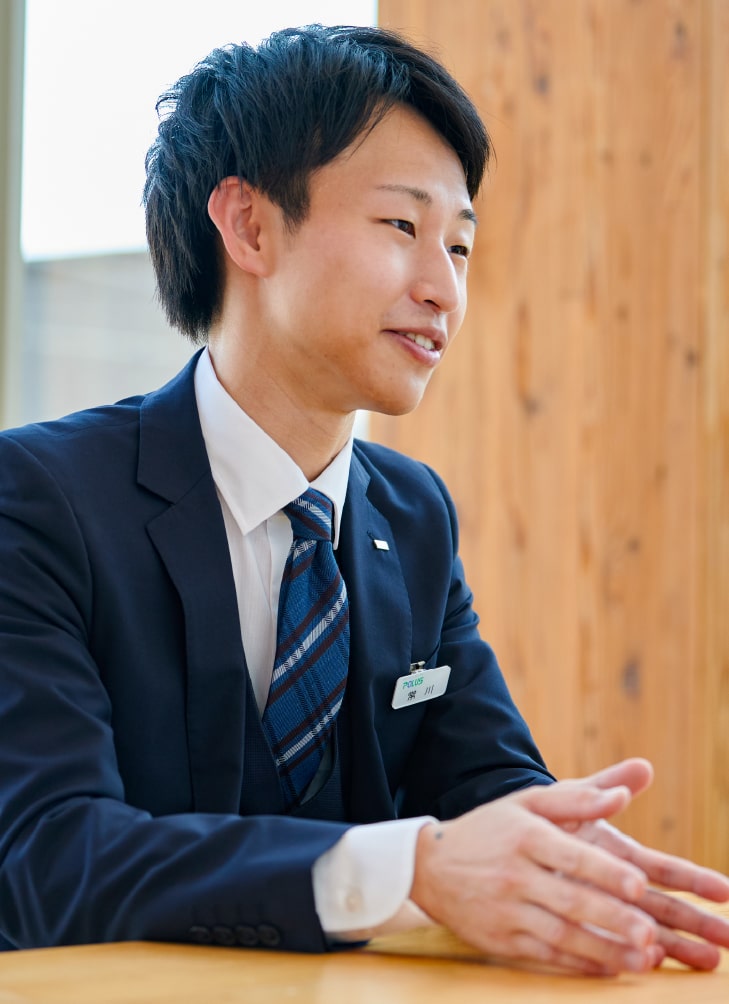 「将来の夢は設計士」。その想いを抱えて、大学の建築学科で学んでいたのですが、個人の設計事務所で手伝う中、夜中まだ働いたり、一人の負担が大きかったりと、労働環境の厳しさに直面しました。「もっと人がたくさんいたら分業できるのに」「デザインに集中できるのに」そんな思いを抱いている中、学生コンペでポラスのことを知りました。地域密着で転勤がなく、愛着をもって仕事ができるかもしれない。また、規模が大きいので、人も多く、労働環境などの面でも安心できる。ここなら、疲弊することなく、自分のライフも大事にしながら、夢をかなえられると思い、入社を決めました。