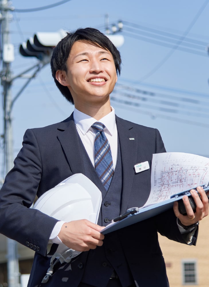 子どものころからモノ作りが好きだった。中学生のころ、初めて図面を見て以来、一目で設計士になろうと決めた。大学時代は、意匠設計を学び、大学院を経て、ポラスに入社。決め手は、地域密着で転勤がなく愛着をもって仕事ができると思ったから。現在は「法人企画設計室」で、法人向けの施設、事務所の設計や、注文住宅以外の賃貸などを請け負う。1年目で、一級建築士に合格。人一倍案件を抱え、日々設計に熱中する。